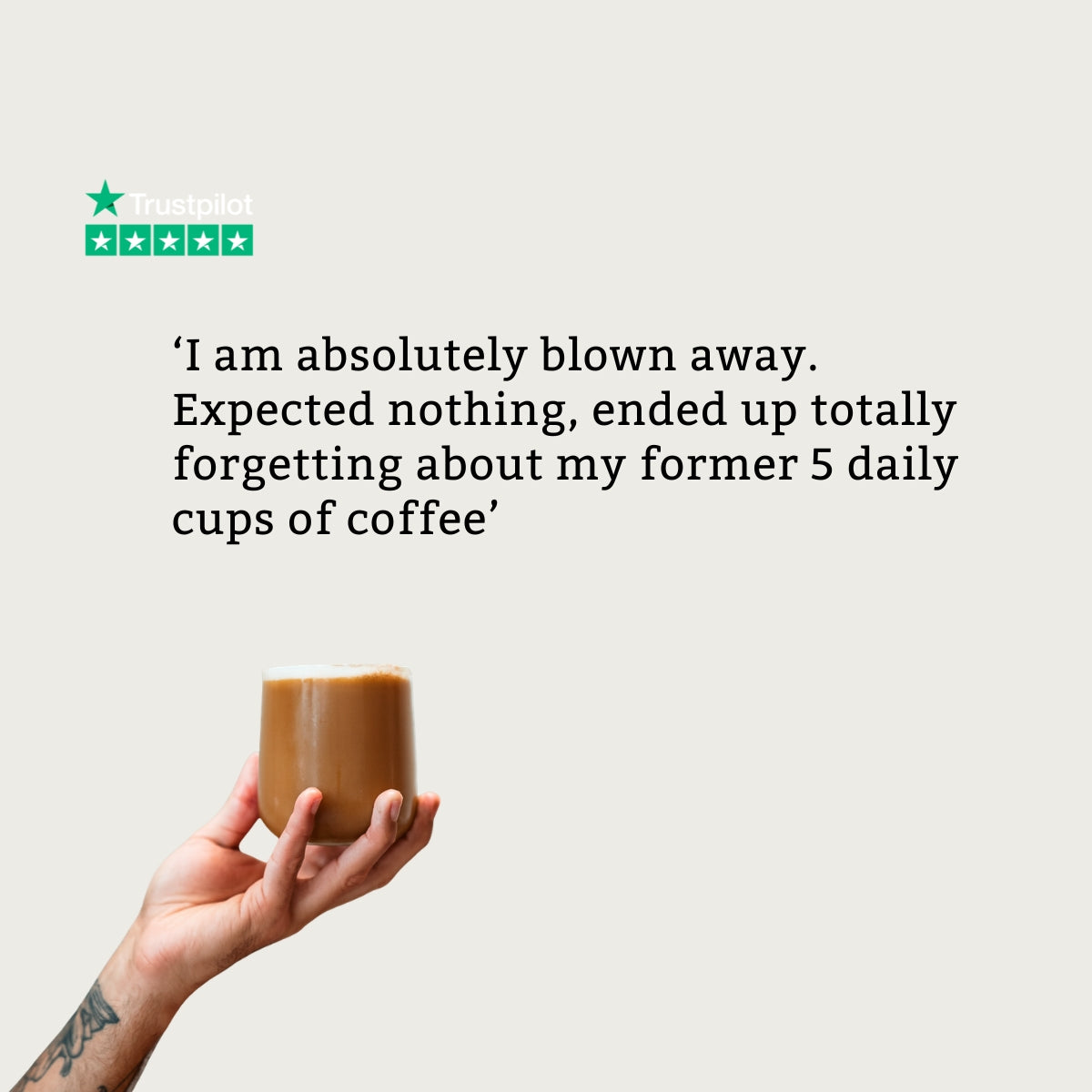 Because Awakening uses Green Masala Chai with Matcha and Cacao, there is some caffeine – but just 20% of the amount you'd find in coffee. Instead of jitters, you get to enjoy the gentle perk of green tea and Cacao!