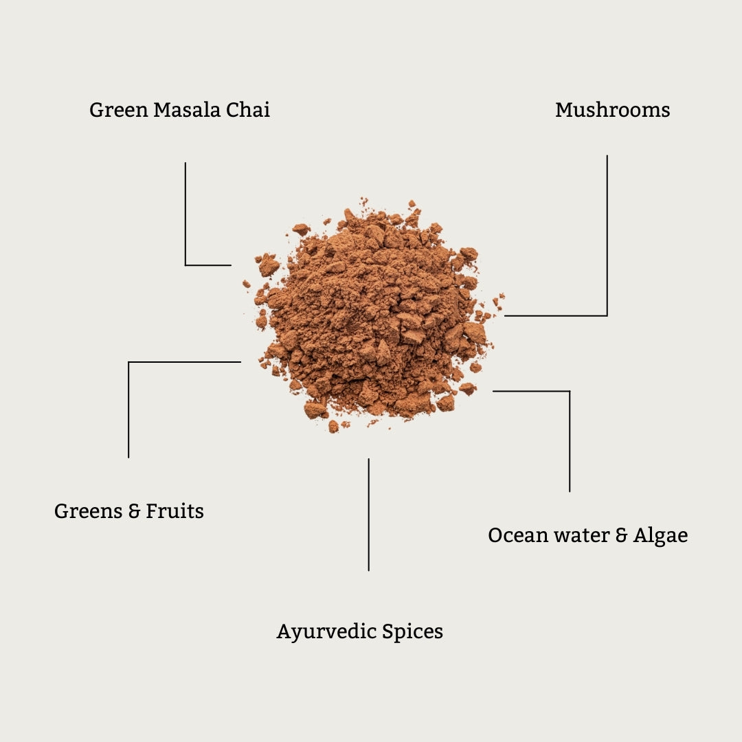 Because Awakening uses Green Masala Chai with Matcha and Cacao, there is some caffeine – but just 20% of the amount you'd find in coffee. Instead of jitters, you get to enjoy the gentle perk of green tea and Cacao!